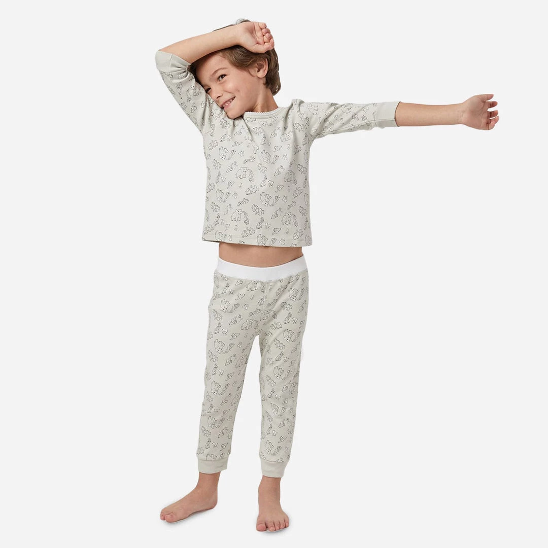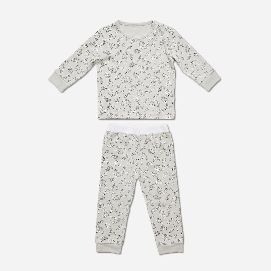 Made from super soft 100% organic pima cotton, the Elephants Riley PJ Set will make you smile from ear to ear! The lightweight long-sleeve top and pant are essential for play-dates, rainy day snuggles and of course bedtime. The top has adorable picot embroidery on the neck and matching pop-color stitching, and the pant has a pop-color waistband.