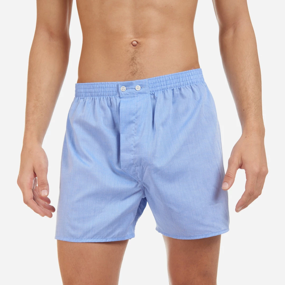 This lightweight fabric is in a beautiful cornflower blue, with a soft finish and a plain, open weave for breathability. This classic boxer shape is generous for those who prefer more coverage and a looser fit. The waistband is fully elasticated and can be adjusted using the two-button fly. Additionally, these boxers have a back panel to avoid the uncomfortable rear centre seam.