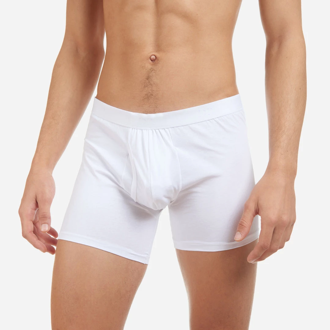 This Pima cotton stretch trunk is a design that will never go out of style. The fitted shape features a longer leg and it finished with manual welt hems for softer body contact as well as minimalist hemlines. The material is an ultra-soft blend of 92% Pima cotton and and 8% elastane, which extends to cover the waistband for added comfort. This trunk has an opening for classic style.