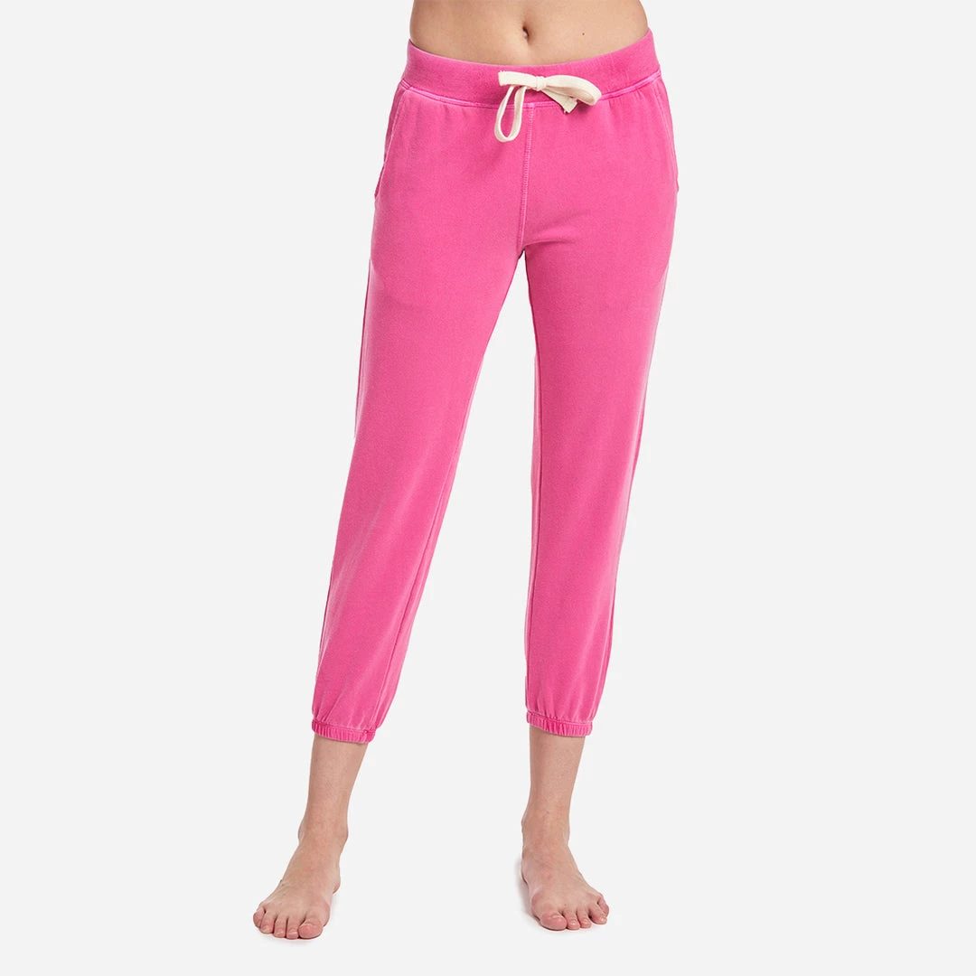 These tapered, girlfriend-fit sweatpants are cropped, and have a drawstring waist and side pockets. Hand-dyed.