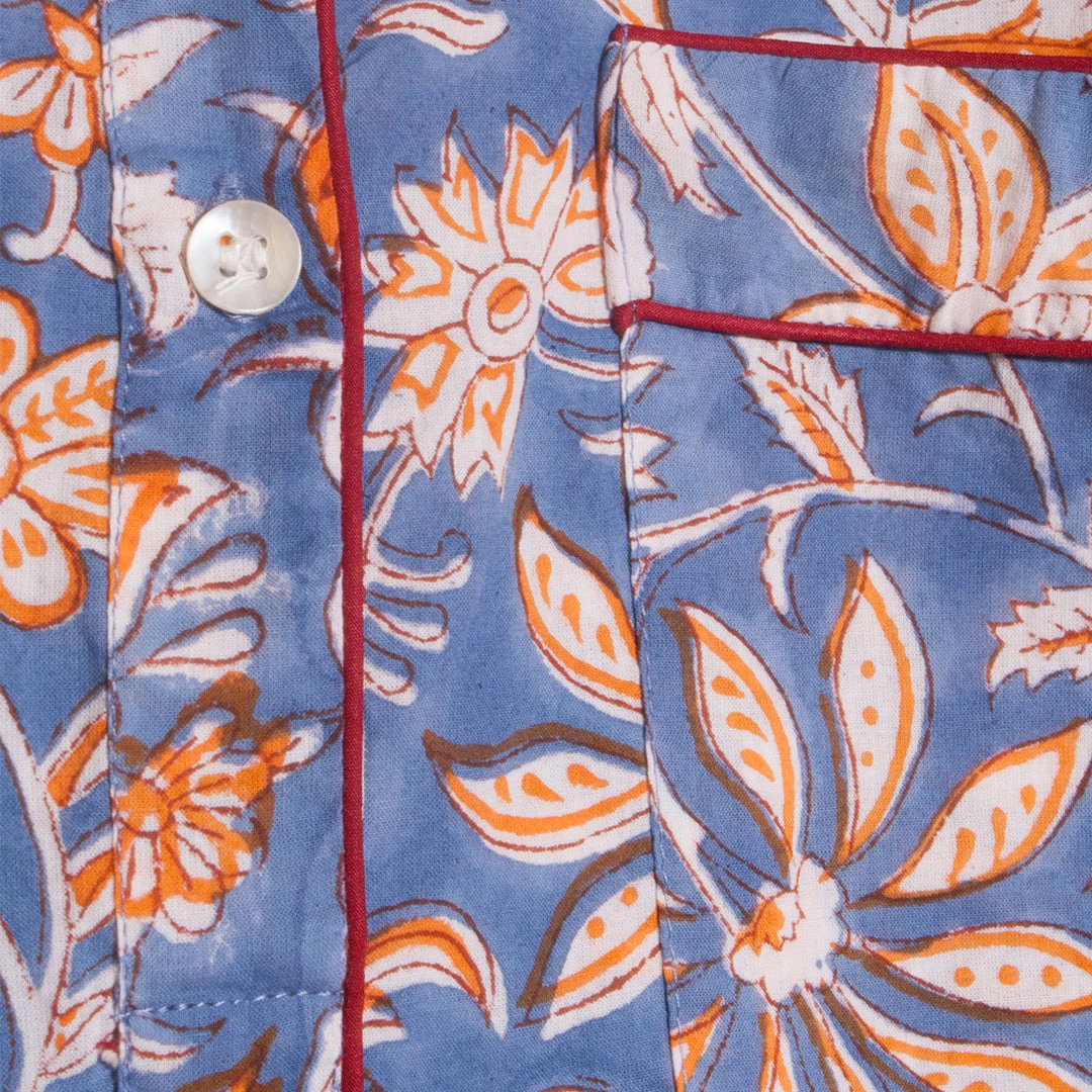Handmade in India using ancient techniques, these colorful hibiscus printed pjs are the perfect addition to your summer holiday. Crafted from a lightweight and breathable cotton, this short set has a relaxed fit, side seam pockets and an elasticated drawstring waist.