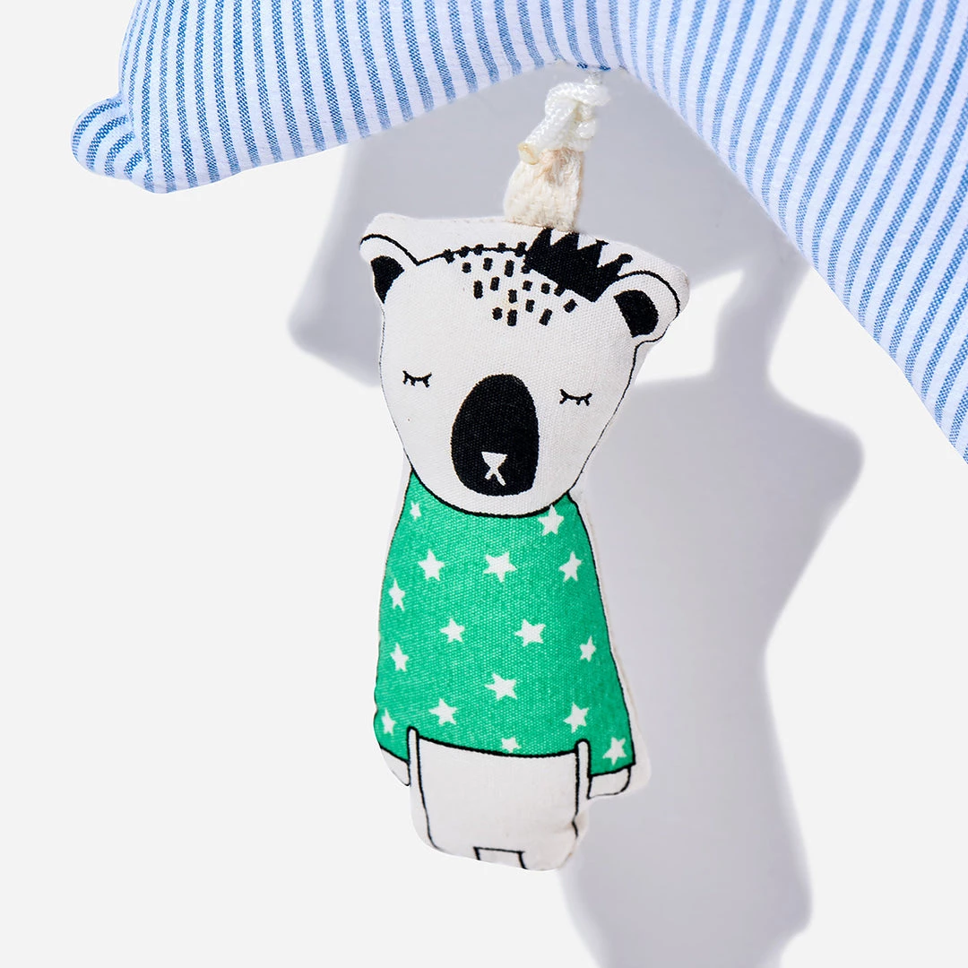 Sweet Dreams will dance in your little one’s head with these whimsical musical soft toys, featuring classical and modern music box melodies. 100% seersucker striped cotton and non-allergenic poly fiber fill.Â