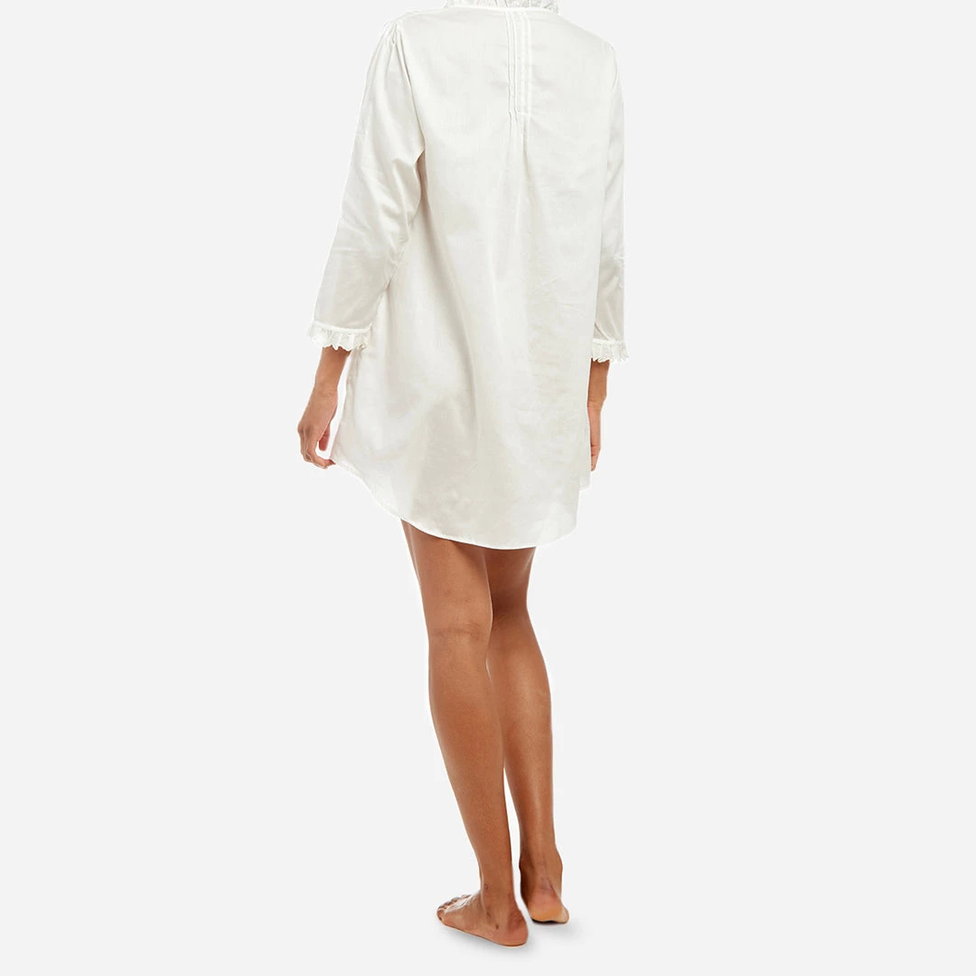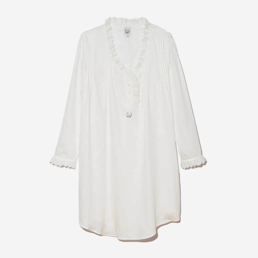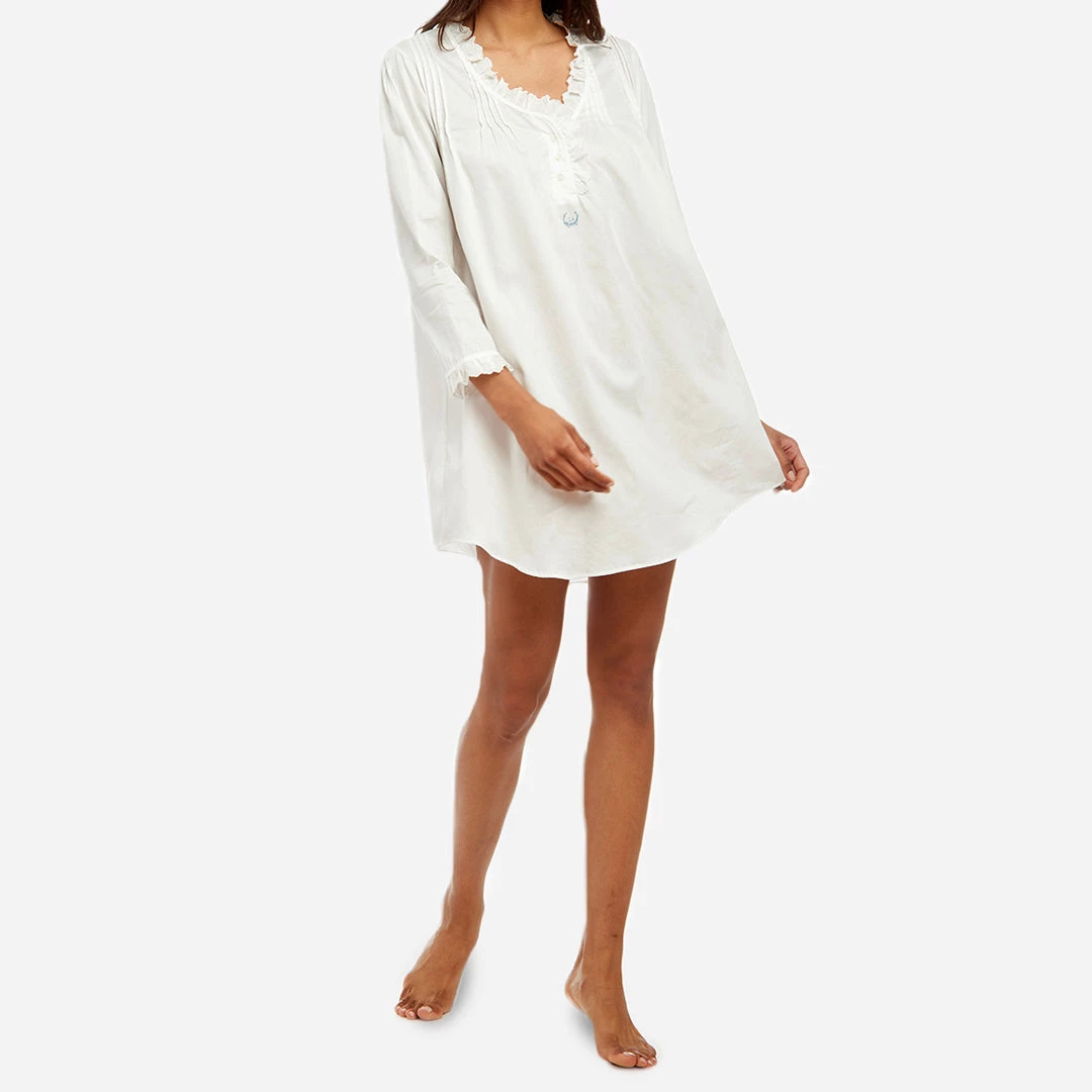 This cotton nightie has old-fashioned details that recall XVIIIth century French court. It is finished with small pleats and a feminine cut for the refined sleeper.