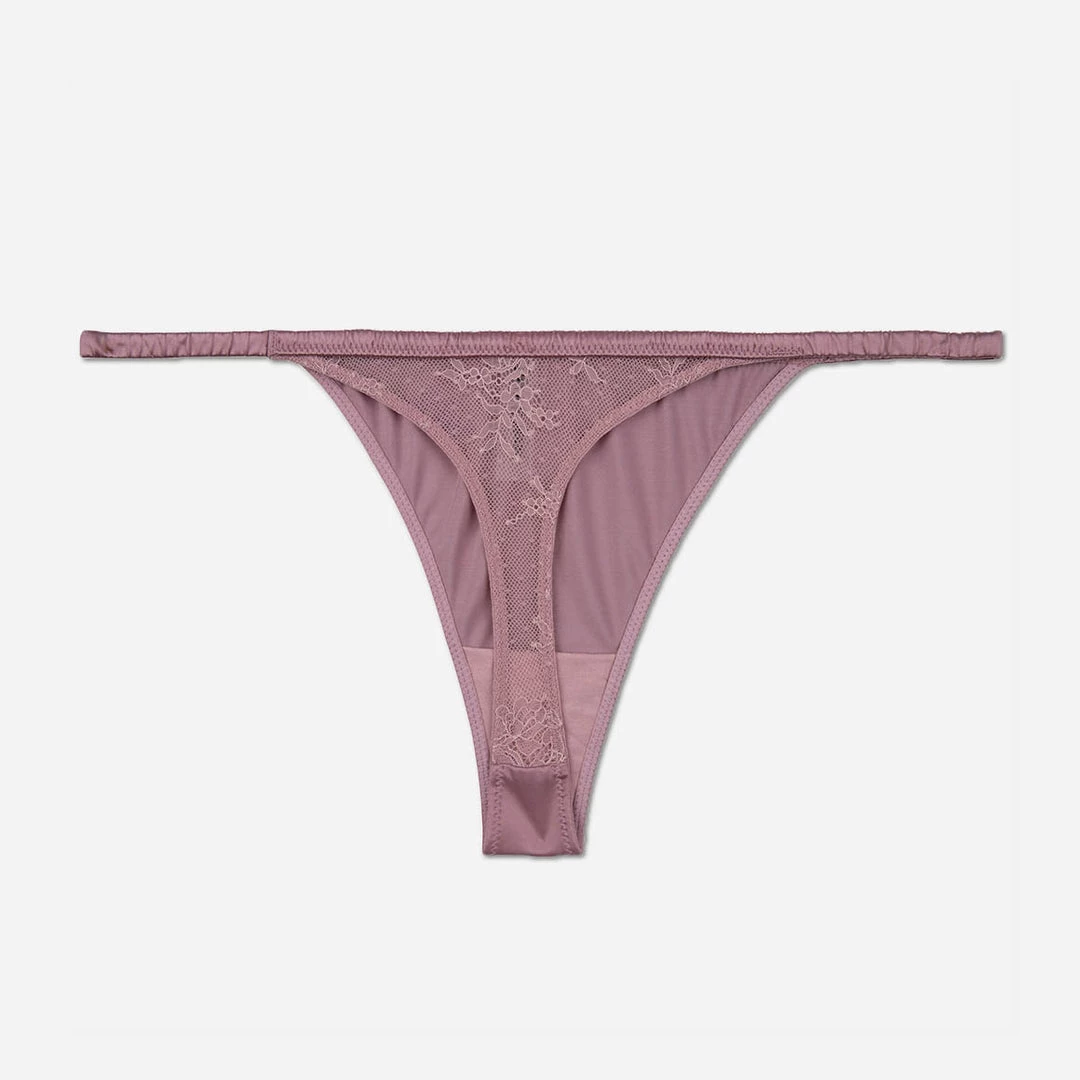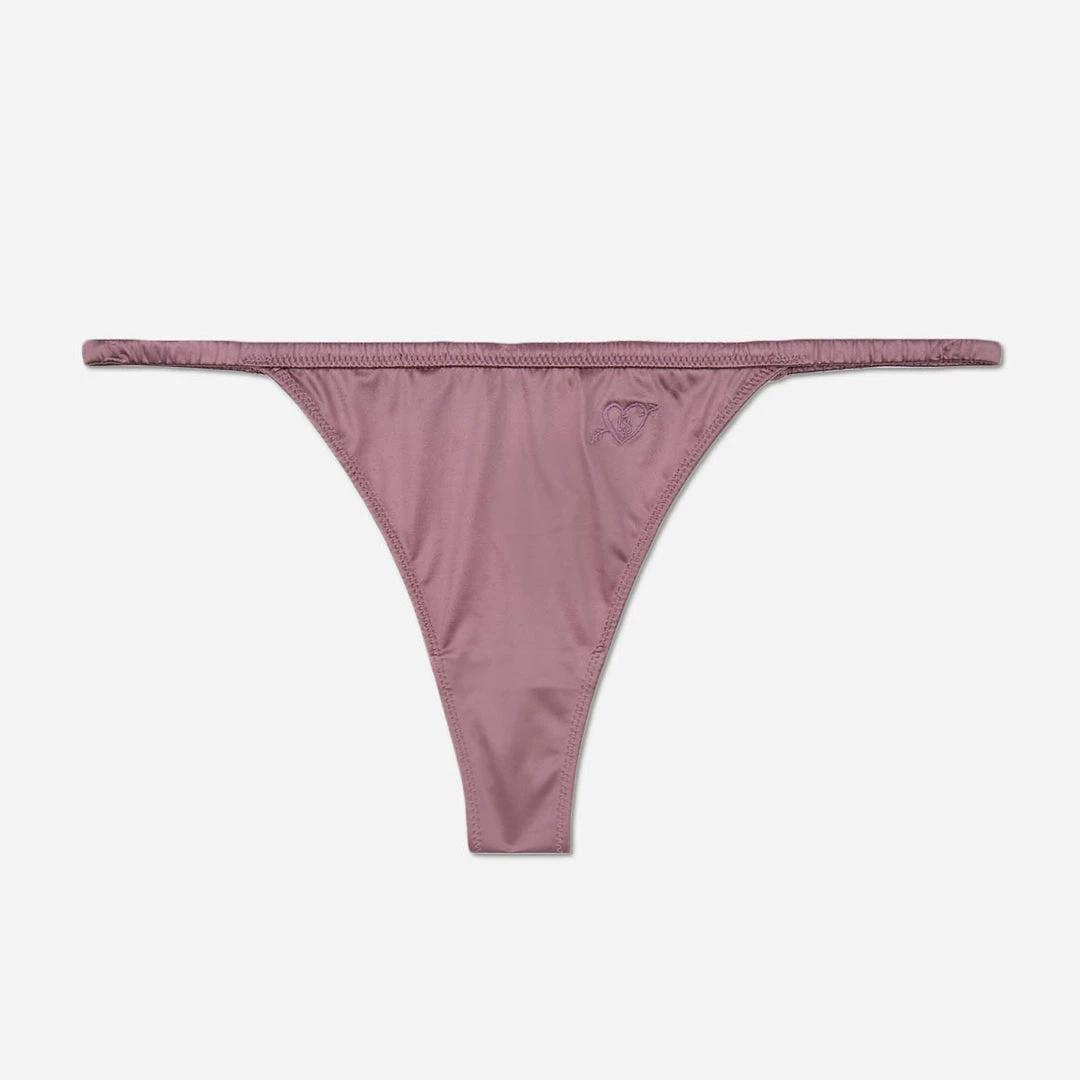 This tanga-style brief is rendered in warm shades of mauve pink, and sits low on the hips for a flattering fit. The front is cut from soft, velvet fabric, the back crafted from satin, and the slender sides covered in ruched satin. The result is a luxe brief that’s perfectly comfortable for sleeping or staying up all night.