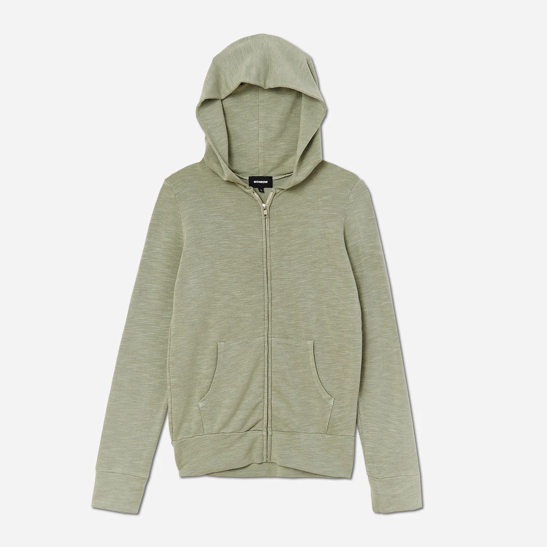 Made from Monrow’s Supersoft fabric, this wear-everywhere zip-up hoodie sweatshirt is a classic. It’s perfect on its own and on cooler days, layer it under your favorite jacket.