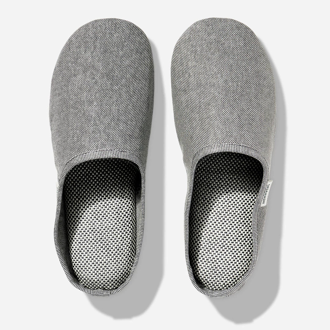 A pair of room shoes is an essential part of every Japanese home. This breathable version is made from Sasawashi fabric, a pill-free fabric that effortlessly absorbs moisture and odors from the skin. The combination of antibacterial kumasaza extract and breathable washi fabric keeps these room shoes feeling fresh and comfortable in any season.