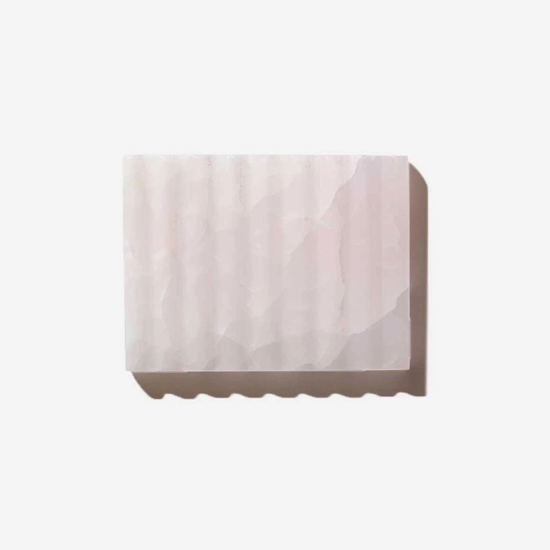 Hand-cut and hand-polished, this pink onyx soap dish is a bathroom necessity. Known for possessing reassuring qualities dating back to Ancient Egypt, pink onyx has relaxing and protective properties. The ridged design lets soap dry without leaving a sticky layer on the dish.