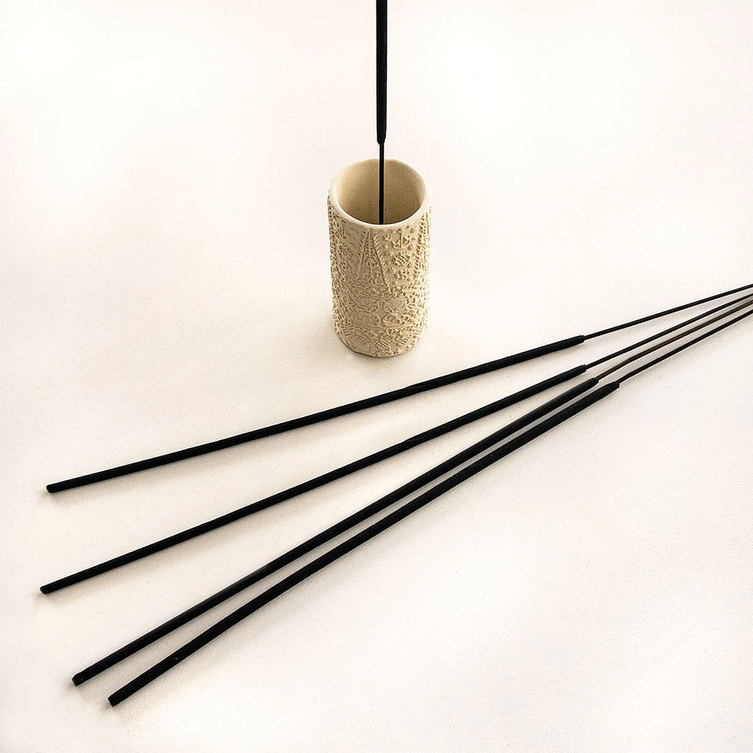 Skeem Design’s beautiful, textural, hand-made ceramic burner is perfect for holding a single stick of their hand-dipped Print Block incense. Each dish is embossed with their signature print block design, inspired by traditional wooden blocks used for printing textiles. Handmade of stoneware by ceramic artist Ellen Hammen.