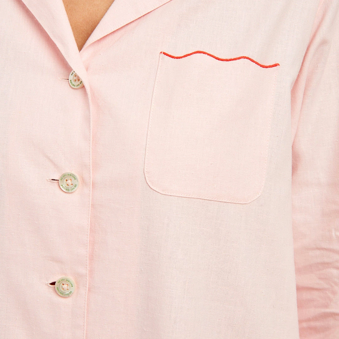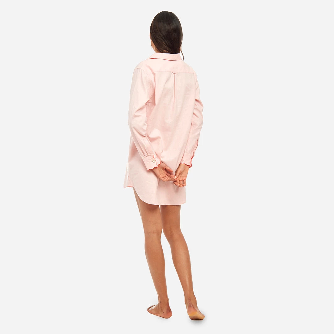 Inspired by an oversized men’s button down, Halley has been thoughtfully designed for sweeter dreams. Cut from hemp organic cotton, this medium weight nightshirt is sustainable and soft. A drop shoulder, above the knee crop, and relaxed fit allow for unrestricted movement. Delicate detailing, scalloped embroidery, and functional cuffs add an element of daywear and sophistication without sacrificing comfort.