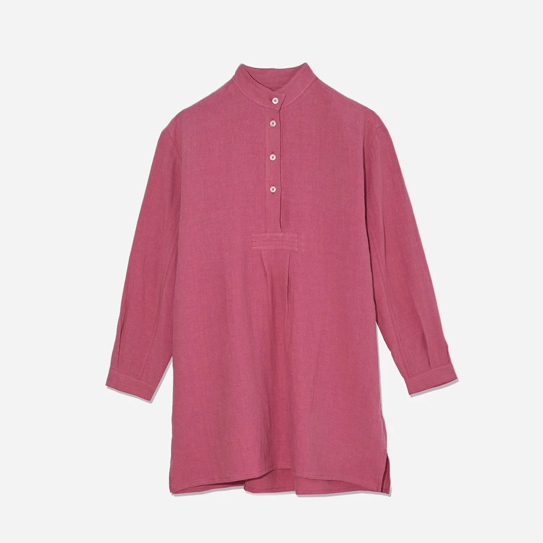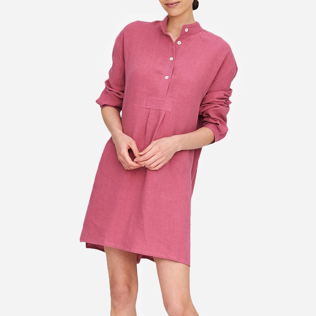 Based on a vintage men’s chemise, the Short Sleep Shirt is the perfect weekend transition piece for bed, to breakfast, to sofa. This classic nightshirt has a roomy cut, with a wide armhole so that restless sleepers won’t feel restricted. This item also doubles as an oversized day shirt or a beach cover up.